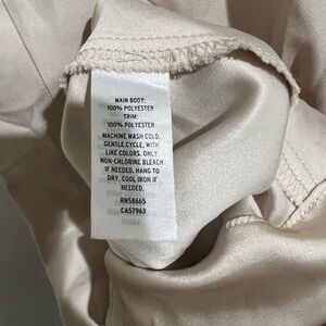 Halogen Beach Beige Satin Look Full Slip M, preowned no stains or tears, midi length, can be used as a nighty or slip dress, v-neck, adjustable straps, Questions? Leave a comment below!