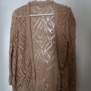 Gorgeous knit lace 3/4 sleeve button front cardigan from Halogen. In great condition, could use a wash and block dry.