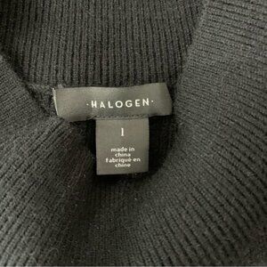 Halogen Black Asymmetrical Button Sweater Long Sleeve Ribbed Knit L Minimalist