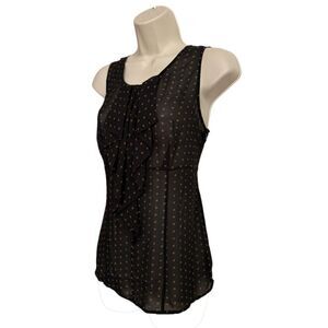 Halogen Black & Brown Polka Dot Sheer Sleeveless Top Size S