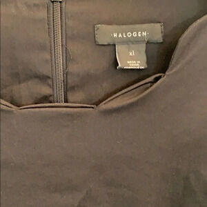 Halogen black dress in excellent condition. This dress is simple yet chic with its scalloped neck and tulip hem. It will be great for the office with a blazer or worn alone for all your black dress events.