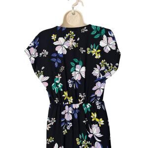 Halogen Black Floral Faux Wrap Midi Dress Size S