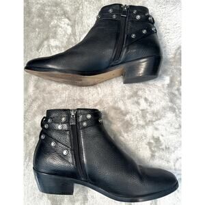 Halogen Black Leather Studded Strap Detail Side Zip Biker Ankle Boots Size 9