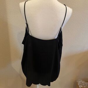 This elegant black top features a chic scalloped neckline, perfect for any occasion. Its sleek design offers a sophisticated look.