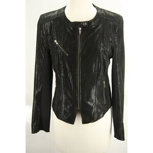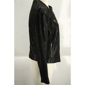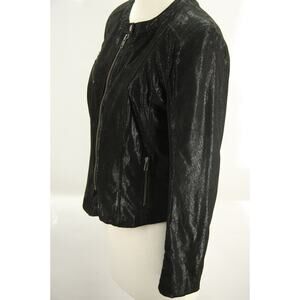 Halogen Black Shimmer Suede Leather Biker Jacket Size Small Petite $298 Womens