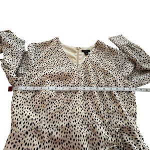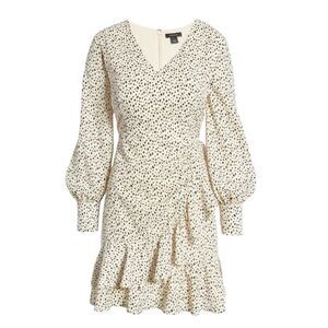Halogen Ivory Black Speckle Print Long Sleeve Ruffle Dress