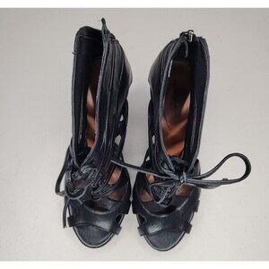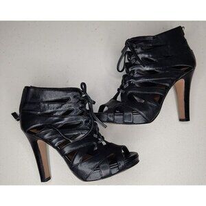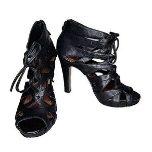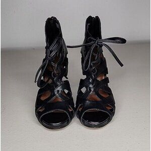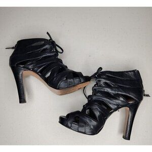 Halogen Black Strappy Leather Stiletto Heels Pumps Women's Size 5 EUC