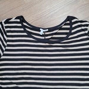 🔺️Halogen Black & Tan Striped Linen Blend Short Sleeve Top Medium