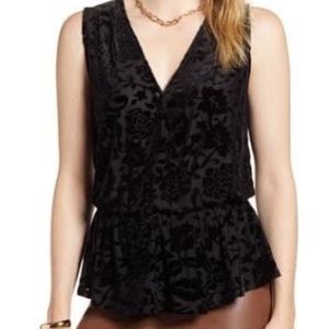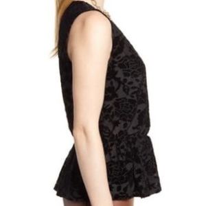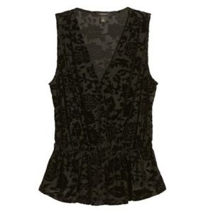 Chic black tank with textured floral design. Sleeveless and versatile. Ideal for any occasion.