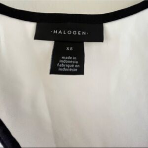 Halogen Black Trim White Sheer V-Neck Knit Sleeveless Top - Small Snag shown in the photo set (barely visible) NOTE: Please view all photos carefully for item description and note the defect as is shown in the photos.