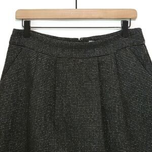 Halogen Black Tweed Mini Skirt Front Pleat Preppy Chic Office Date Night Size 8