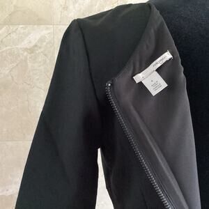 Halogen black ponte dress in size 6. Short sleeves, V-neckline, and subtle panel darting for a flattering, structured fit. Made from a smooth, stretchy ponte knit that holds its shape and resists wrinkles. A true workwear staple—easy to style, machine washable, and office-ready. Retail $128