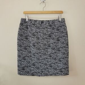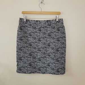 Classy black and white abstract print pencil skirt. Back zip, lined.
