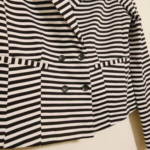 Halogen | Black & White Striped Cropped Blazer Jacket (Size Large)