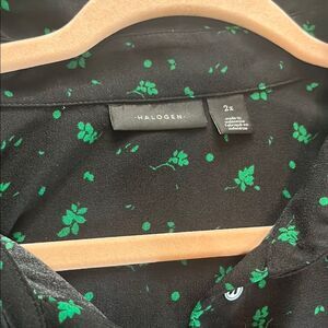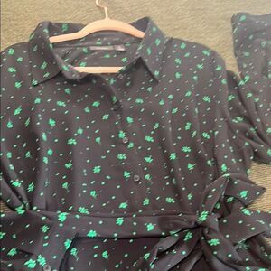 This elegant Halogen sundress features a notched collar and bishop sleeves, perfect for a casual work setting. The black and blue color palette adds a sophisticated touch, while the lightweight fabric ensures comfort and ease of movement.