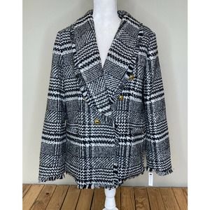 Chic black and white plaid design. Double-breasted with gold buttons. Stylish and very warm. This blazer has only been worn twice! Excellent condition!