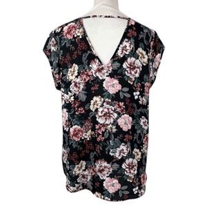 Halogen Black Rose Print V-neck and Back Blouse Cap Sleeve Flowy Size Large. Excellent condition. See photos for details and unstretched measurements. Shop my closet and bundle multiple items for discounts and one shipping fee!