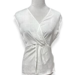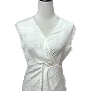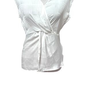 Halogen Blouse Check Surplice V-Neck Twisted Front Sleeveless White W US XS NWOT