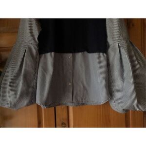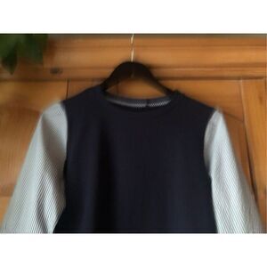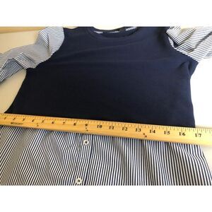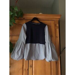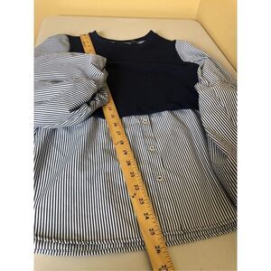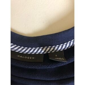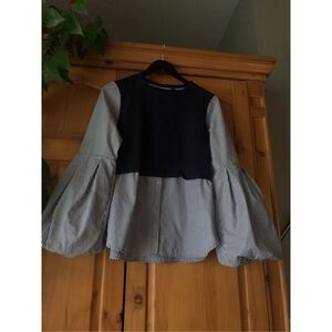 Halogen Sz Small Blouse Long Bell Sleeves Top Navy Blue and striped Womens Top Nice
