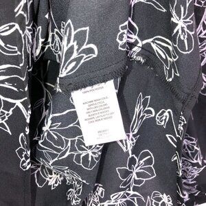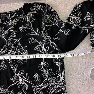 Halogen Blouse Women Small Black White Floral Long Sleeve V-Neck Lightweight