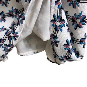 White with black white blue and pink floral pattern