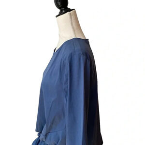 Halogen tie front blouse, blue petite women’s top, Halogen LP size large petite blouse, women’s career workwear blouse, modern business casual shirt, 3/4 sleeve tie hem top, versatile desk-to-dinner blouse, Halogen professional women’s clothing, chic everyday blouse
