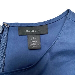 Halogen Blue Tie-Front Top Size Large Petite | 3/4 Sleeve Workwear Blouse