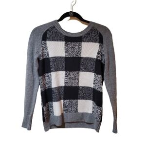 Halogen Buffalo Plaid Sweater. Gray, white and black make this sweater one you can wear with anything. Long sleeve, crew neck.