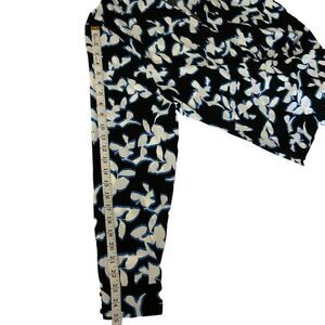 Blouse V-neck by Halogen with Hidden Button Down Front in Black White and Blue Floral Print with Long Sleeves and Button Cuffs Women Size 2X