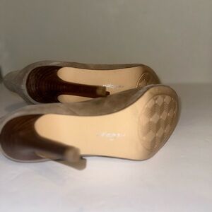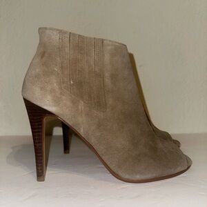 Halogen | Camden Suede Peep Toe Bootie in Taupe size 9