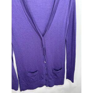Halogen Cardigan Sweater Womens Medium M 100% Merino Wool Purple