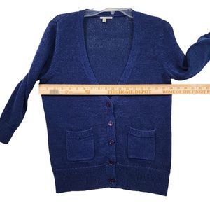 Halogen Cardigan Sweater Womens Size M 3/4 Sleeve 100% Cotton Blue