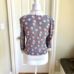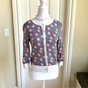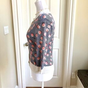 Halogen Cardigan Sweater in Navy Orange White Stripe & Circle Print (S)