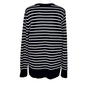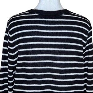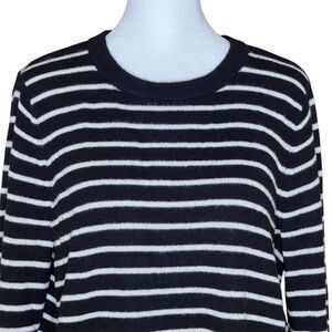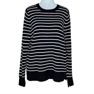 Halogen Cashmere Black White Striped Sweater Crew Neck Split Hem Women's Large