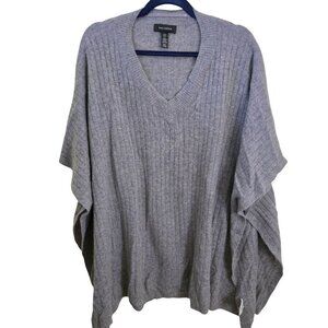 Halogen Cashmere Poncho Ribbed V Neck All Season Super Soft Gray One Size