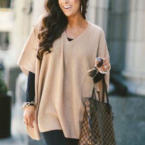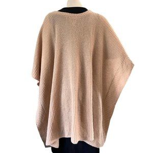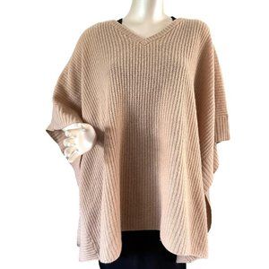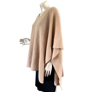 Color I believe is called oatmeal. Ribbed knit texture. V neck design. Pullover. Laid flat it measures 43" across and 29" long. 100% cashmere but the materials tag has been removed, still has designer and one size tag. Extremely soft.