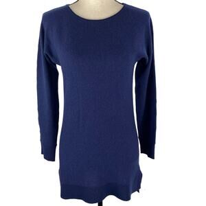 Halogen Cashmere Wool Blend Sweater Long Sleeve Tunic Crewneck Royal Blue Womens Size Small