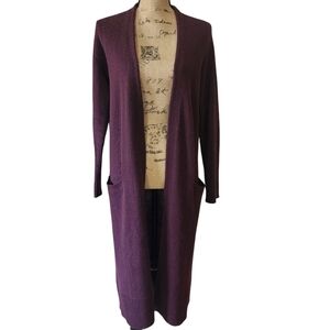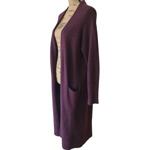 Halogen Cashmere/Wool Blend Eggplant Open Front Cardigan Sweater - Medium