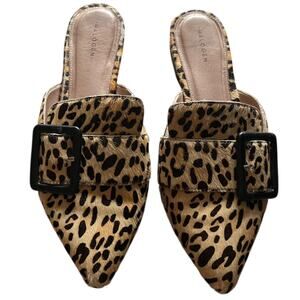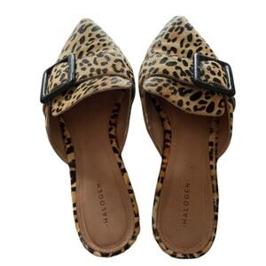Halogen Cheetah Print Elyssa Buckle Mule Calf Hair Flats Women's 7 Pointy Toe