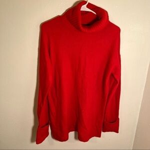 Great condition, new without tags. Halogen. Chinoise Ribbed Turtleneck Sweater. Red. A soft, drop-shoulder turtleneck sweater is back in season with this wonderfully cozy pullover.
