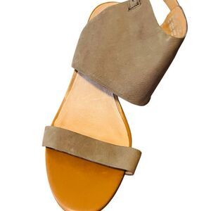 Halogen Clarette Taupe Brown Leather Wedge Sandals size 7.5