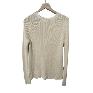 Halogen Cream Fisherman Sweater Crew Neck Knit Lace Up Stitching Size Small