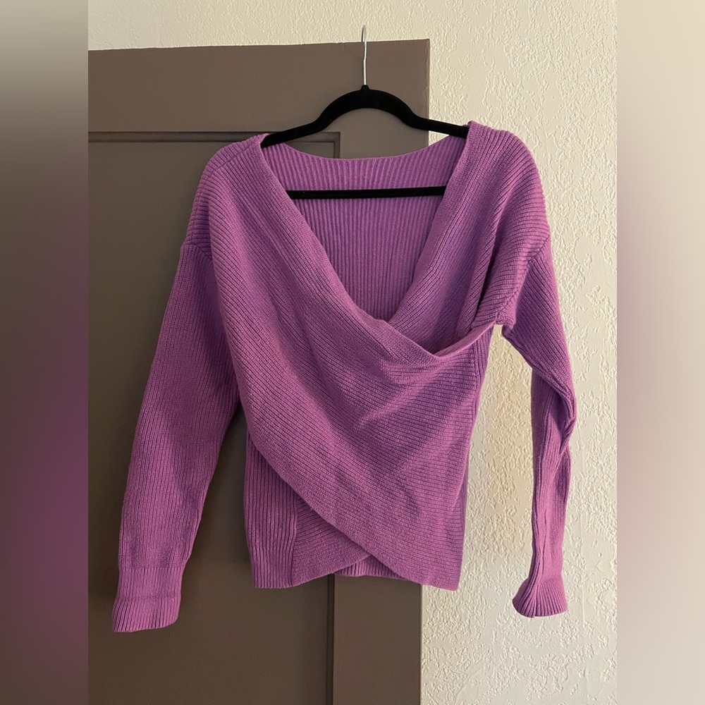Halogen Cross Back Ribbed Sweater Purple Medium