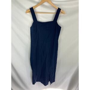 Halogen Dark Blue Linen Blend Midi Dress Size Small