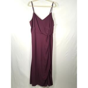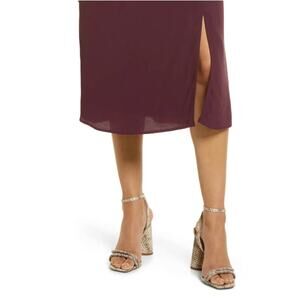 Halogen Dress Womens Small 4 6 Maroon Side Knot Midi Slipdress Wrap V Neck Slit Lined Party Wedding Cocktail Formal Evening Bridesmaid Holiday Christmas Event