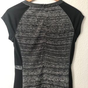 Sheath color block tweed gray and black dress by Halogen, acrylic nylon wool rayon blend. Excellent preloved condition, no tears or stains