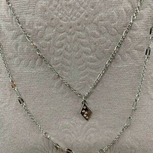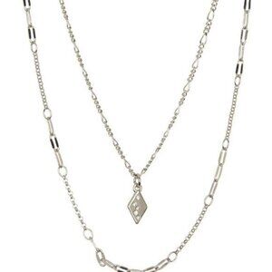 Silver-tone dual layer chain necklace with diamond-shaped charm