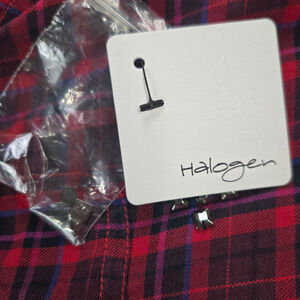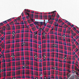 Halogen Embellished Plaid Button Down Shirt Red Jewel Detail Flannel Size Medium