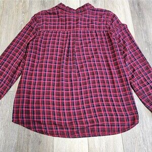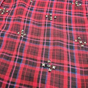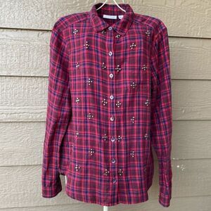 Halogen Embellished Red Plaid Button Up Shirt Blouse Women's Large Holiday