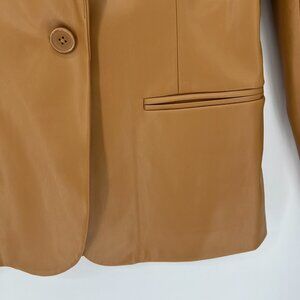 Halogen Faux Leather Blazer Size Small One Button Jacket Tan Brown Officecore